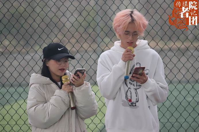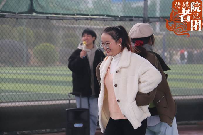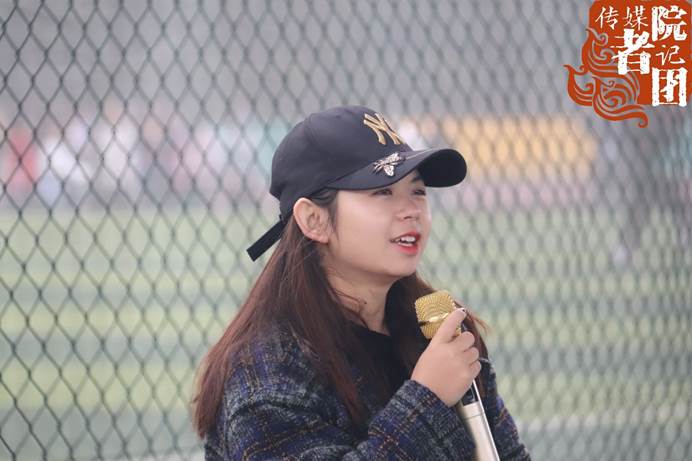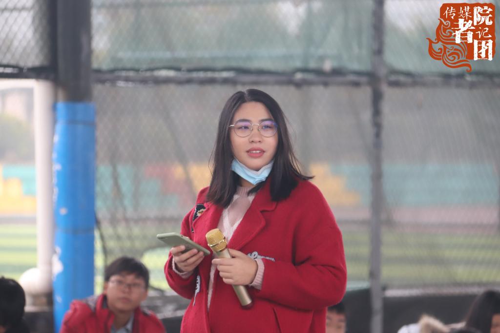 2020级新闻传播学类辅导员曹依婷在主持游戏
