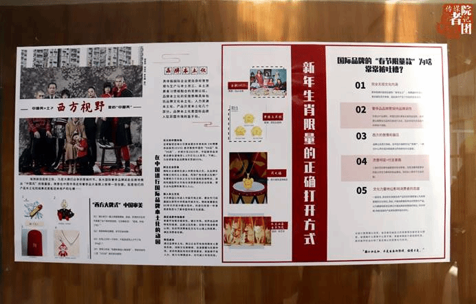 2020年12月30日下午,传媒学院于设计学院展厅举行了2018级新闻学专业《跨文化传播研究》课程结课成果展。任课教师郭莹组织并主持了本次成果展示会;语言文学学院汉语国际教育专业辅导员杨恋、设计学院教师孔思思、传媒学院新闻学专业专任教师陈姮、数字出版专业专任教师秦丽云、姚俊萍受邀参加本次成果展示会并进行评分工作。