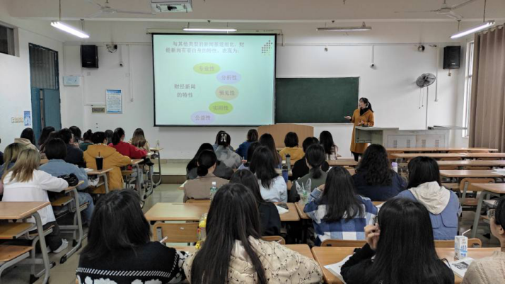 此次巡查的课堂2018级新闻学的《财经新闻报道》课程,授课教师为秦丽云老师。在课堂上,秦老师先让学生对身边的财经新闻展开小组讨论,同学们积极回答,对财经新闻有了个初步了解。随后秦老师用理论与案例展示相结合的方式帮助同学们更好理解财经新闻的定义,同时听课的传媒学院领导班子及各老师针对课堂情况进行认真记录。