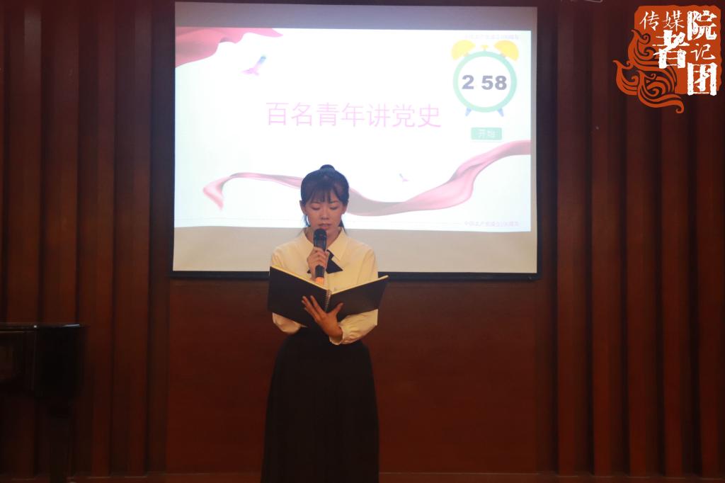 2019级新闻传播学类钟媛媛正在演讲《回眸党史,感恩今日》