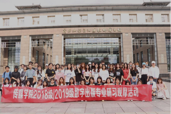 2018级和2019级数字出版专业学生和老师们在馆前合影留念