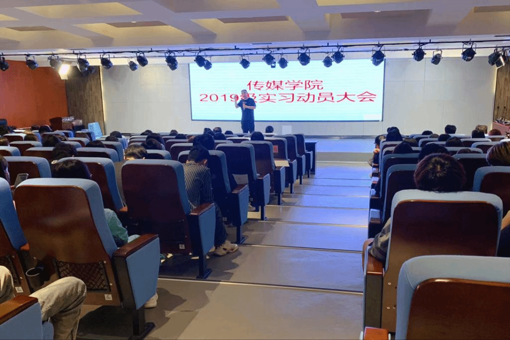 2022年6月15日上午,传媒学院组织2019级播音与主持艺术专业、广播电视编导专业全体学生在至善讲堂展开实习动员大会。会议由传媒学院副院长胡又嘉老师主持。传媒学院院长王朝元、传媒学院党总支书记孙俊、副书记王德彬参加会议。