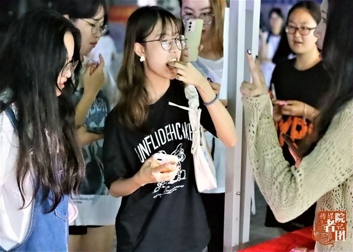 俗话说,“八月十五月正圆,中秋月饼香又甜”。活动中“月饼识味”的摊位吸引了众多学生驻足参观。桌上摆放着切好的月饼,参与者需要品尝月饼并猜出所吃月饼的正确口味。既有传统经典口味,也有豆乳、茉莉抹茶、巧克力牛奶等新奇口味,带给参与者多重味蕾体验,也为整个活动的开展增添了不少趣味。