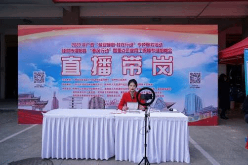 根据2023年广西“就业暖心·桂在行动”专项服务活动的统一部署和工作要求,为充分发挥灌阳县传统节日——农历“二月八”农具文化节的社会效应,扎实开展好“春风行动”专项行动,重点保障区内重点企业、重点园区、重点项目招工用工,同时有序组织农村富余劳动力转移就业工作,拓展巩固脱贫攻坚成果,助力推进乡村振兴。2月27日,由广西壮族自治区人力资源和社会保障厅、桂林市人民政府主办,自治区就业服务中心、桂林市人力资源和社会保障局、灌阳县人民政府等部门联合承办的2023年广西“就业暖心·桂在行动”专项服务活动——桂林市灌阳县“春风行动”暨重点企业用工保障专场招聘会在灌阳县红豆杉广场举行。本次招聘会通过线上线下双驱动的方式为企业招才引智,在现场设置网络直播间,通过主播待岗的形式为无法来到现场的求职者提供便利,进一步促进就业困难人员就业,解决企业招工用工难题,为扩大就业机会、助力乡村振兴发挥了积极作用。