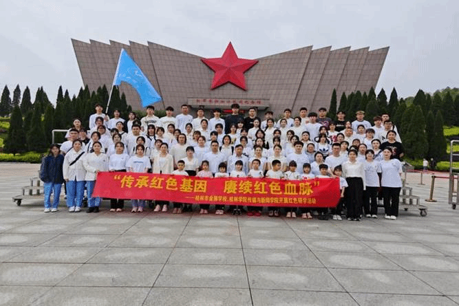 为厚植爱党爱国爱社会主义情怀,弘扬爱国主义为核心的民族精神,4月15日,传媒与新闻学院联合桂林金雁学校在全州湘江战役纪念馆开展了以“传承红色基因,汲取奋进力量”为主题的红色研学活动暨传媒与新闻学院党总支2023年第一次理论学习中心组(扩大)集中学习会。传媒与新闻学院院长、党总支副书记钟毅,党总支副书记王德彬,团总支书记蒋承良,副书记曹依婷,金雁学校老师及学生代表,传媒与新闻学院团总支学生会代表,播音与主持艺术学生党支部代表,新闻学党支部代表及青马班代表100余人参加了本次活动。