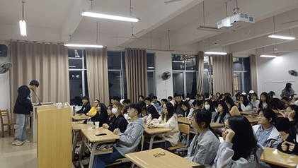 2022级新闻传播学类专业学生正在认真听主持人介绍“三月三”传统文化