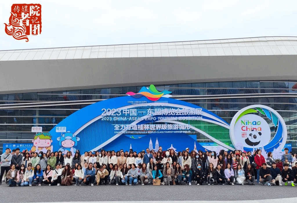10月13日,传媒与新闻学院党总支副书记李晓蕾,新闻与出版教研室主任利求实、数字出版专任教师郑文慧、辅导员陈虹、李嘉茜以及160余名学生赴临桂新会展中心参加2023中国-东盟博览会旅游展。