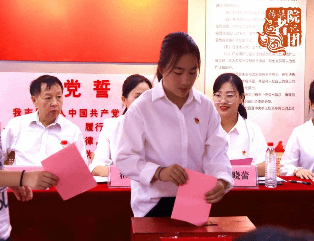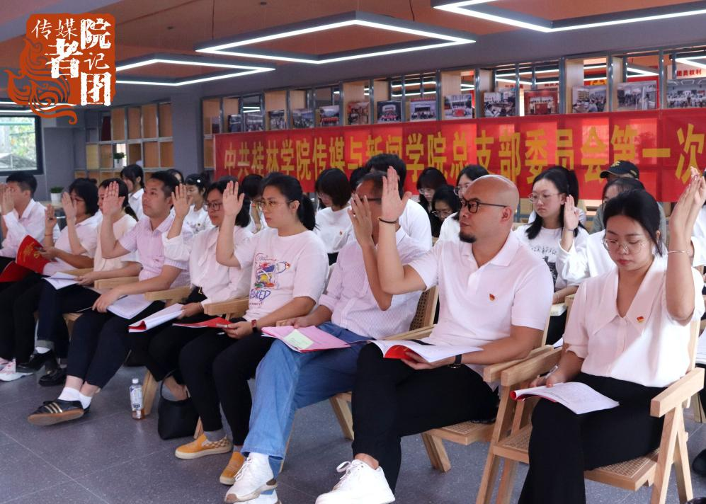 接着,大会进行换届改选工作,选举新一届党总支委员。全体党员一致通过了《中国共产党桂林学院传媒与新闻学院总支部委员会第一次党员大会选举办法》、大会监票人名单、新一届党总支候选人名单。全体党员以无记名投票方式严肃庄重地行使民主权利,在监票人的监督下,本次大会选举出陈虹、陈璐、李晓蕾、姚俊萍、赵辉、钟毅、翟彦7名同志为中共桂林学院传媒与新闻学院第一届总支部委员会委员。