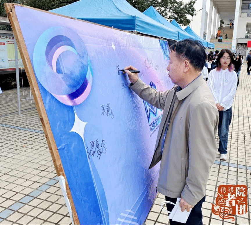 传媒与新闻学院院长钟毅出席本次活动并在活动板上签字