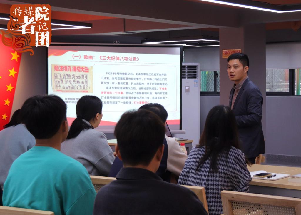 会议伊始,江仿处长以《从党史视角读懂共产党人眼中的廉洁》为题,带领同学们从党史上的清廉人物、清廉纪律、纪律和规矩、清廉学校建设的路径和思考四个方面解读中国共产党眼中的廉洁。江仿处长详细讲述了云山上的军需处长和身携巨款却一颗粮食都没有的杨靖宇的事例,以生动鲜活的故事为同学们心中埋下了廉洁的种子。在讲述党史上的清廉纪律时,借用歌曲《三大纪律八项注意》,以朗朗上口的旋律中深化了同学们的廉洁意识。在讲述清廉学校建设的路径思考中明确了要把党史学习教育融入思想理论教育、师德师风建设、学生日常管理、学校治理体系中,指出了党风廉政学习的具体方法,让大家学习起来有章可循,成为我们的行动准则。