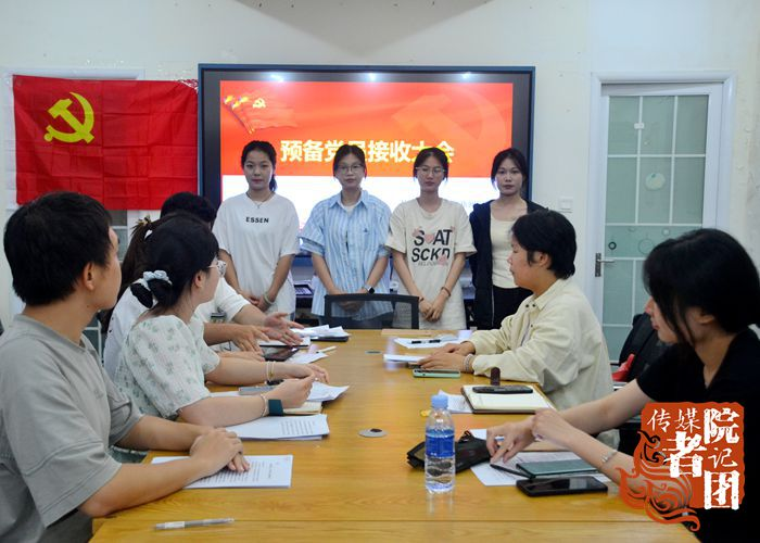 5月29日下午,传媒与新闻学院学生社区党支部在传媒与新闻学院二楼会议室召开预备党员接收大会。传媒与新闻学院党总支副书记李晓蕾、学生社区党支部书记李嘉茜、教师党员曹依婷、党支部全体党员以及4名发展对象采取线上与线下结合的方式参与会议,会议由学生社区党支部书记李嘉茜主持。