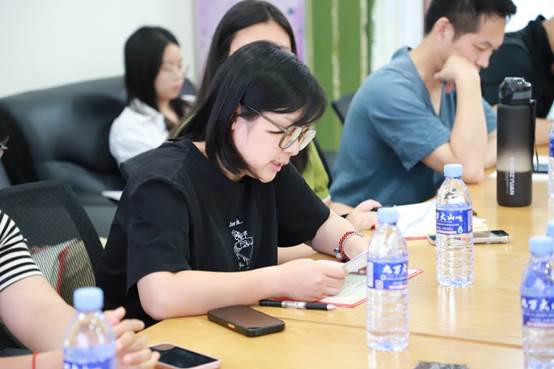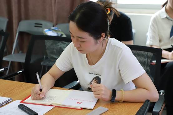 数字出版实务教研室主任姚俊萍正在认真听讲