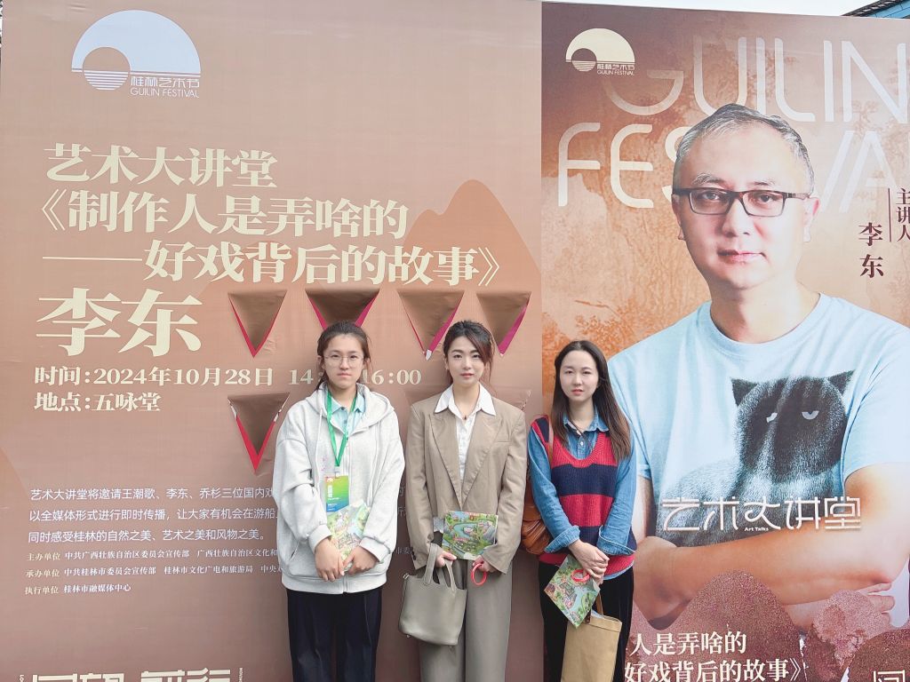 10月28日下午两点,2024桂林艺术节艺术大讲堂之《制作人是弄啥的——好戏背后的故事》李东讲座,在桂林靖江王城景区,独秀峰下的月牙池湖心亭举行。我院广播电视编导专业师生和数字出版专业教师参加了本次活动。