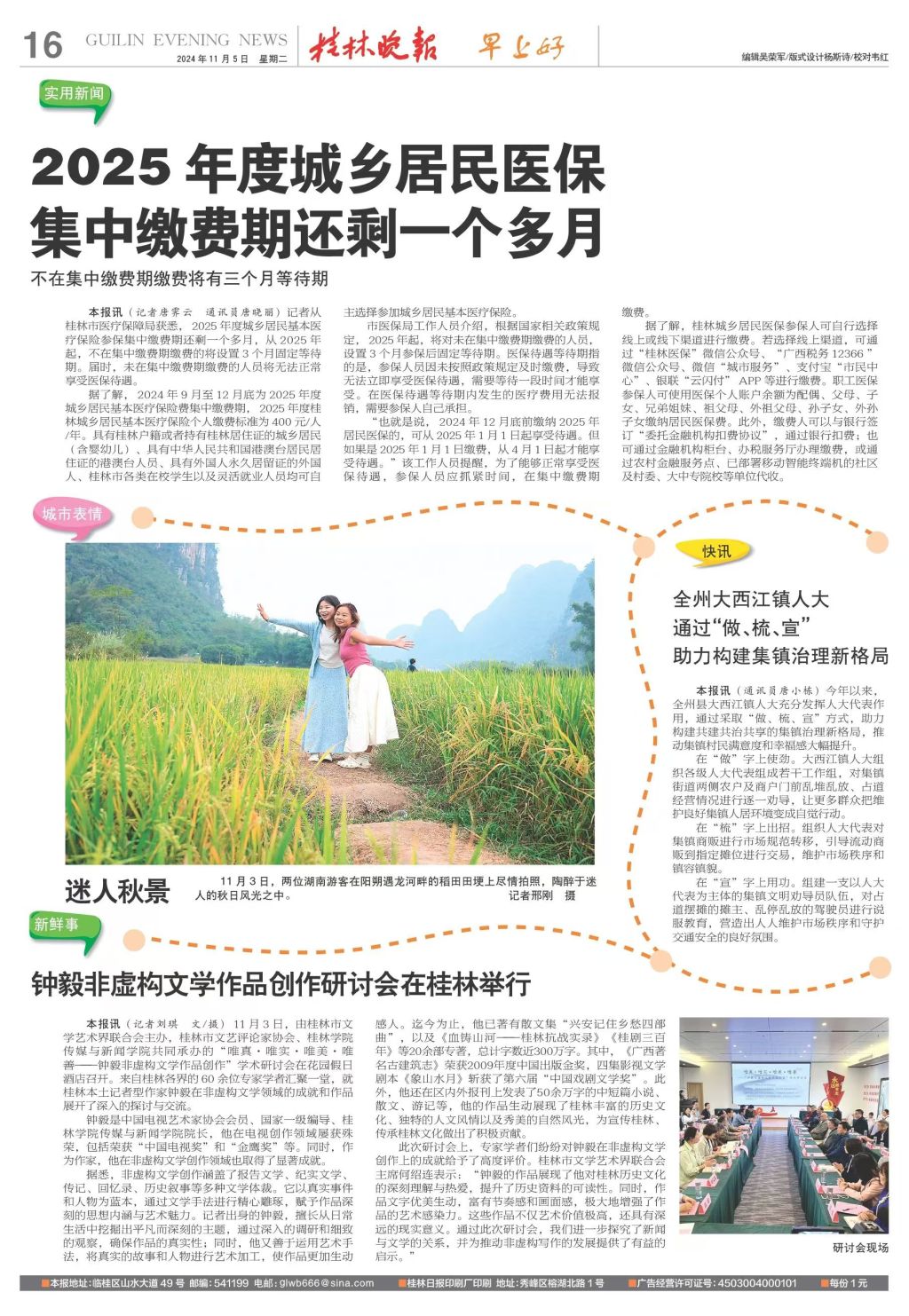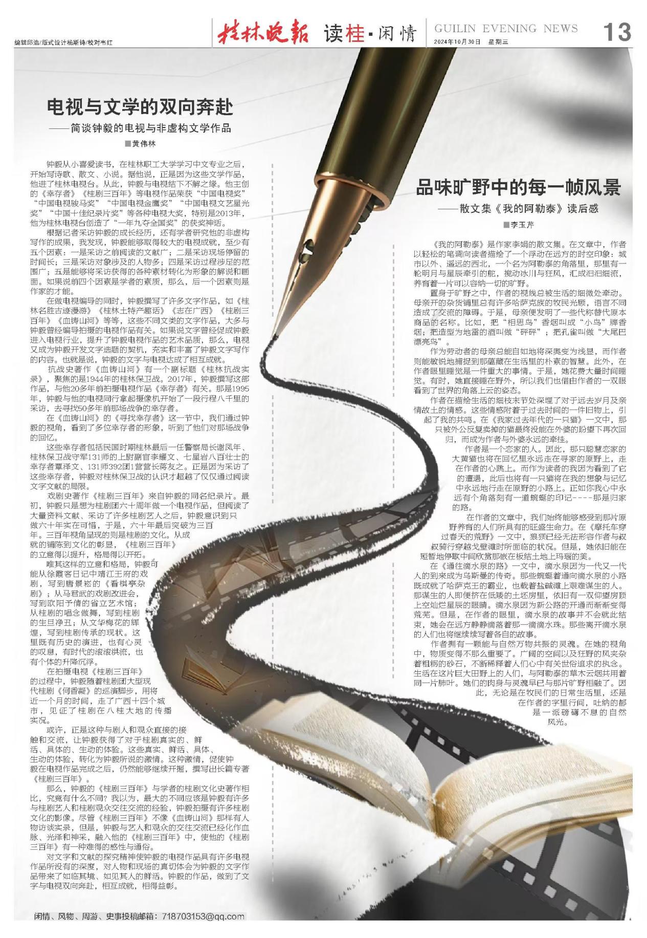 媒体的广泛参与为此次研讨会增添了更多色彩,桂林晚报连续刊登《电视与文学的双向奔赴——阅读钟毅的电视与非虚构文学作品》、《钟毅:文以载道,薪火永续》两篇文学评论文章,奏响了本次研讨会前奏。桂林电视台、桂林晚报、桂林日报、人民日报海外网、中国网、桂林生活网、消费日报、法制中国网、桂林文联公众号桂林文艺等多家媒体,纷纷派出资深记者进行现场报道,通过文字、图片、视频等多种形式,对本次研讨会进行了全面报道,将研讨会的精彩瞬间和深刻见解传递给广大公众,展示了传媒与新闻学院在学术研究与社会影响力方面的卓越成就。