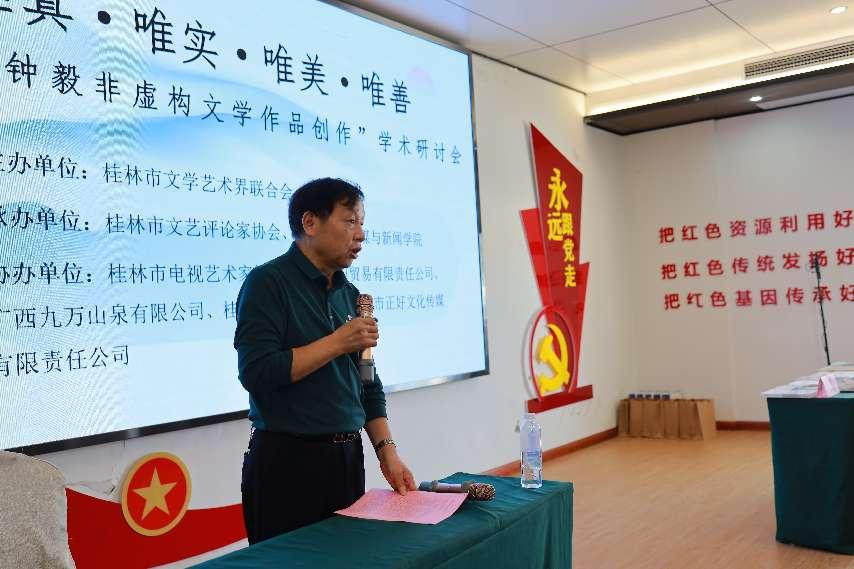 近日,由桂林市文学艺术界联合会主办,桂林市文艺评论家协会、桂林学院传媒与新闻学院共同承办的“唯真唯实唯美唯善——钟毅非虚构文学作品创作”学术研讨会在花园假日酒店会议室召开,来自全国60余位专家学者齐聚一堂,共同探讨钟毅在非虚构文学领域的成就。传媒与新闻学院党总支书记、广播电视编导教研室负责人、专业带头人及部分教师代表参与本次研讨会。
