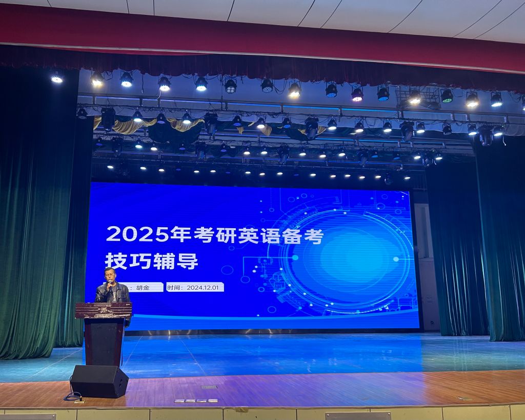 12月1日上午,传媒与新闻学院于弘善讲堂开展“考研英语备考技巧”专题讲座。桂林理工大学外国语学院胡金教授作为主讲人,传媒与新闻传播学院党总支副书记、各专业辅导员以及2023级、2024级全体学生参加本次讲座。