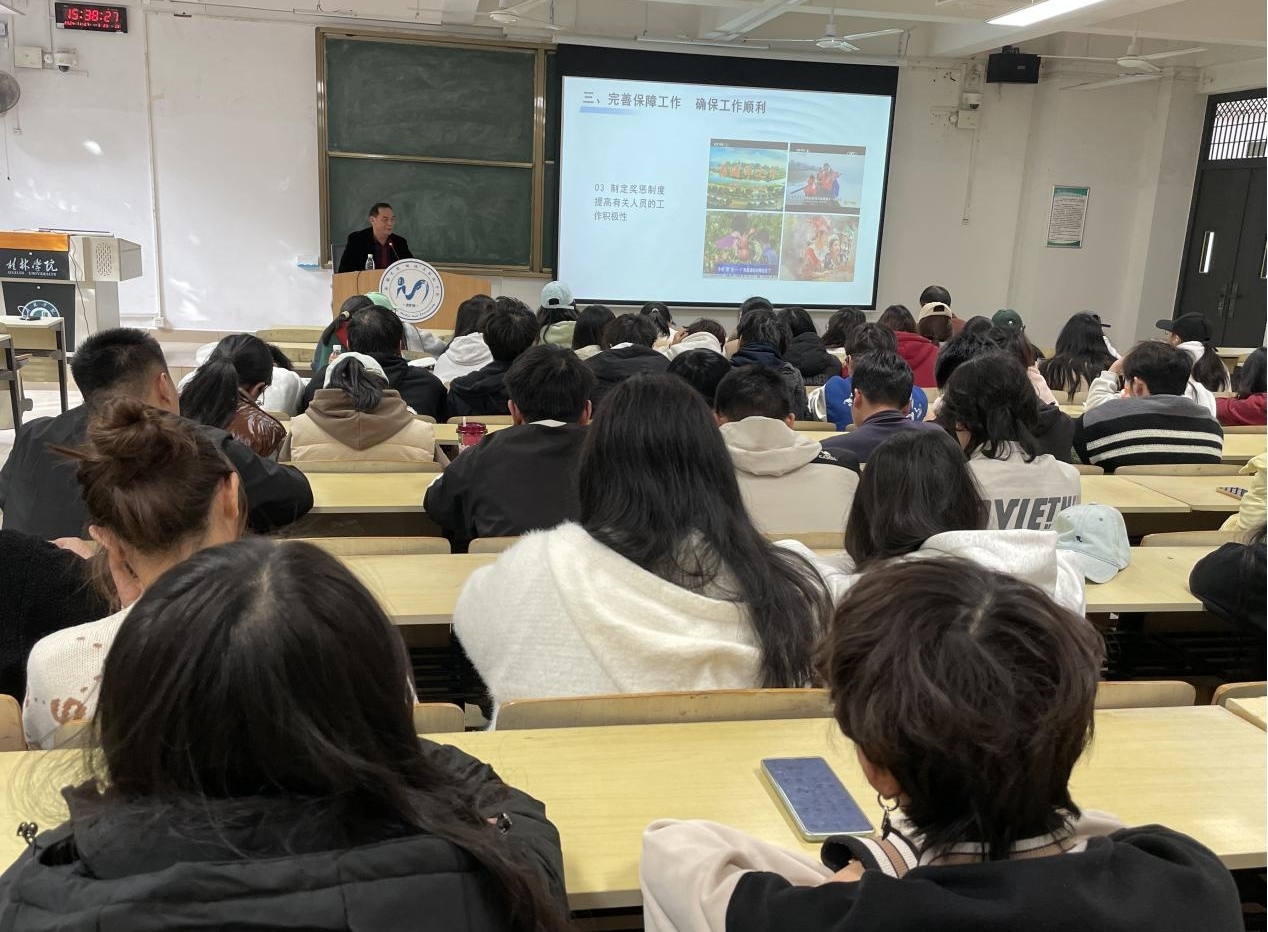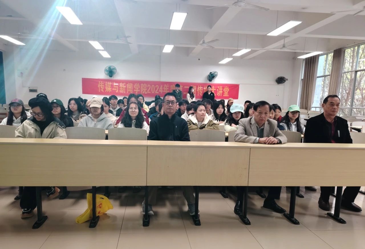 本次讲座由主任编辑、广播电视编导专业高级“双师型”银龄教师黎仁刚主持。传媒与新闻学院院长、广播电视编导专业负责人及教师代表参加了本次活动。原荔浦县政府办公室主任黎厚平、原荔浦广播电视台资深记者李华德也参加了活动。