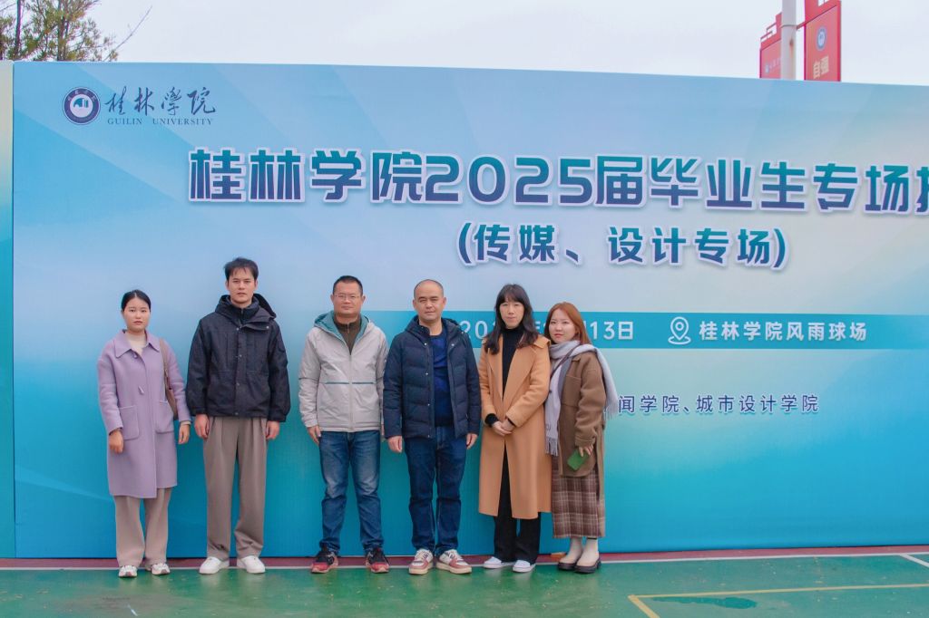 12月13日上午,桂林学院2025届毕业生专场招聘会(传媒、设计专场)在桂林学院风雨球场举行。传媒与新闻学院、城市与设计学院领导班子、全体毕业班辅导员、部分专任教师、2021级全体在校毕业生参加了此次招聘会。