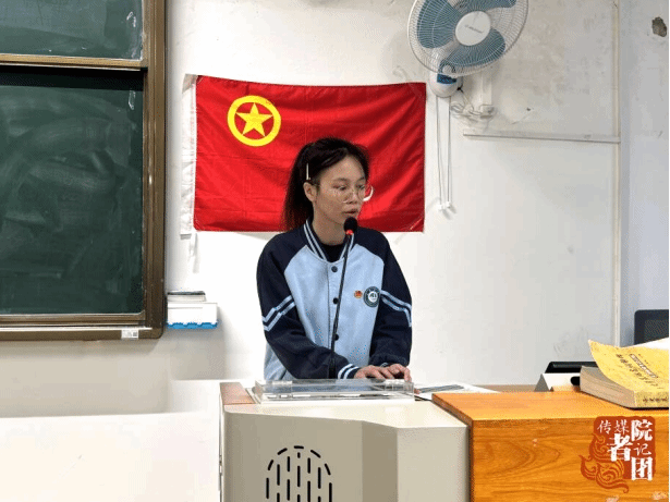 2022级数字出版团支部团支书梁晓妮正在主持会议