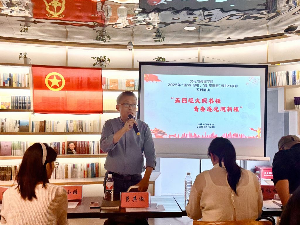 4月28日下午,桂林学院文化与传媒学院在“纸的时代”书店举办了“遇‘荐’好书,‘阅’享青春”读书分享会。文化与传媒学院院长、党总支书记、教师代表、辅导员代表以及各年级各专业学生代表参加本次分享会。