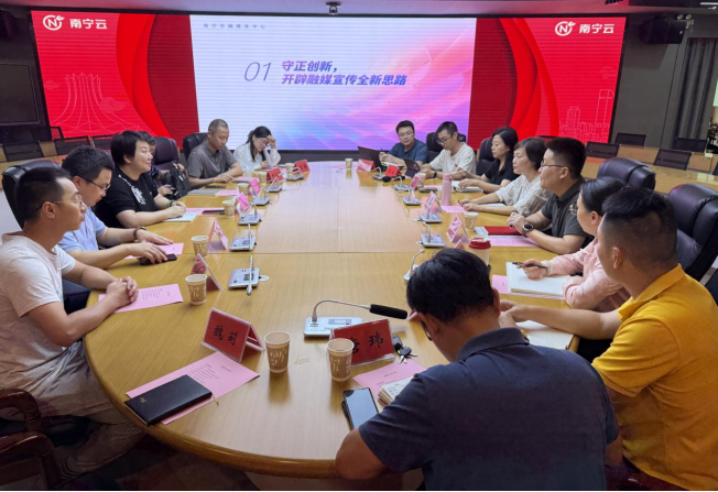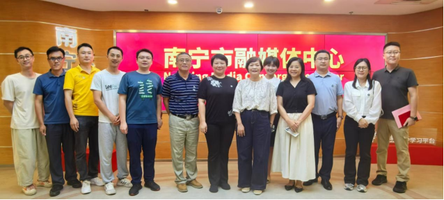 在南宁市融媒体中心,中心副总编辑吴海珍对考察团一行的到来表示欢迎,详细介绍了中心融合发展历程、组织结构、运行状况、业务规模和平台创新建设等情况。