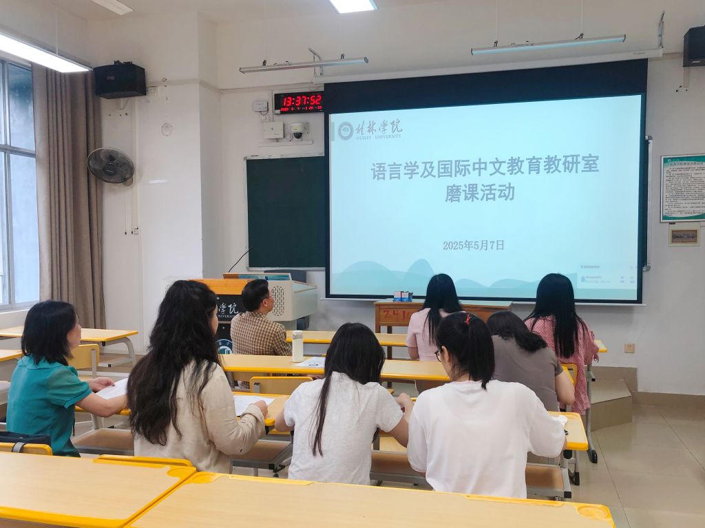 为进一步优化汉语国际教育专业课程教学,提升教师教学水平,打造精品课堂,语言学及国际中文教育教研室在2410教室组织开展了一场扎实深入的教师磨课活动,此次活动主要以说课、试讲的方式展开,全体教研室成员参加了此次活动。