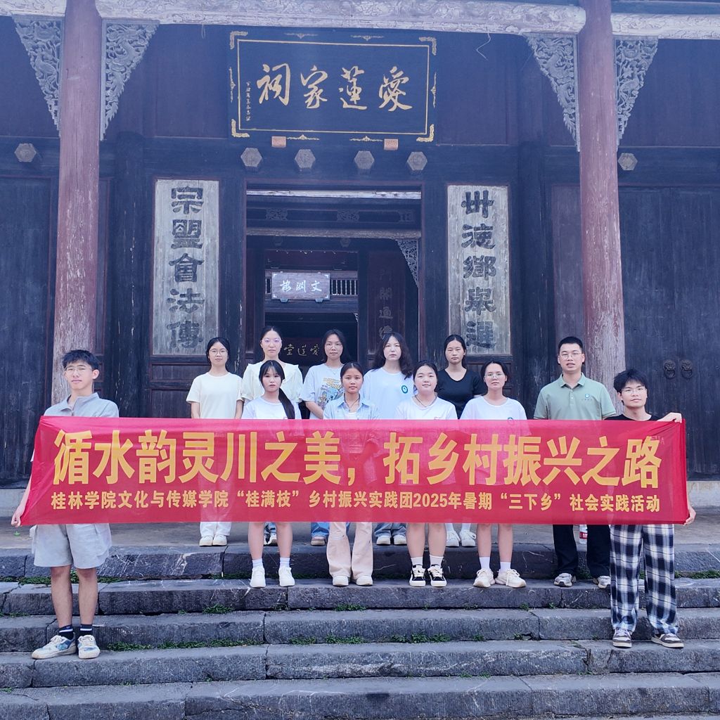 七月盛夏,骄阳似火,青春的热忱与千年的古韵在灵川大地碰撞出绚烂火花。文化与传媒学院“桂满枝”乡村振兴实践团怀着助力乡村发展的初心,走进桂林市灵川县江头村,以青春之力为乡村振兴注入新动能,开启2025年暑期“三下乡”活动的精彩篇章。
