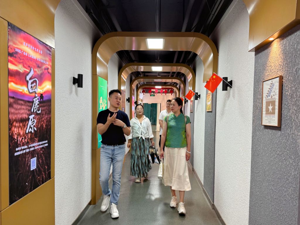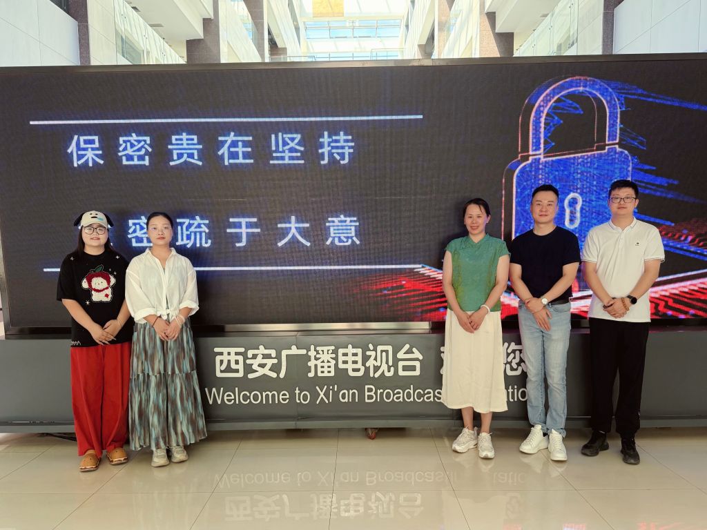 制片人龙超(左一)带领学院领导参观西安广播电视台