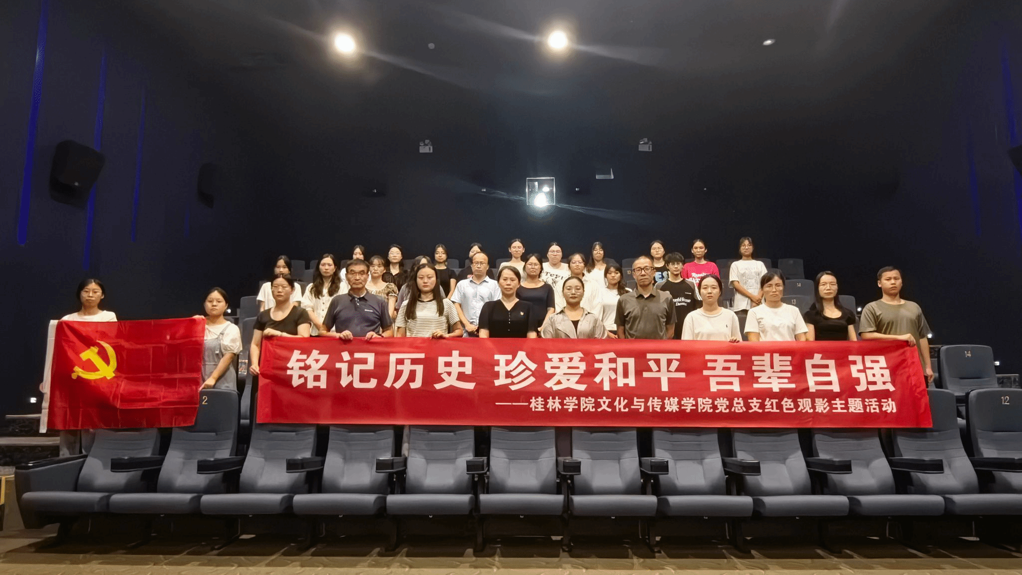 时值“九一八”事变爆发94周年和中国人民抗日战争暨世界反法西斯战争胜利80周年的特殊历史节点,为深切缅怀遇难同胞与革命先烈,警示师生勿忘国耻、矢志自强,9月18日下午,文化与传媒学院党总支组织三十余名师生党员代表赴金雁电影城开展“铭记历史 珍爱和平 吾辈自强”主题红色观影活动,集体观看了揭露日本侵华战争期间反人类罪行的影片《731》。
