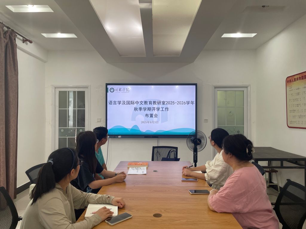 9月3日,语言学及国际中文教育专业在文化与传媒学院二楼会议室召开了2025-2026学年秋季学期开学工作布置会。会议由教研室主任黄鹭老师主持,所属教研室的老师参加了会议。