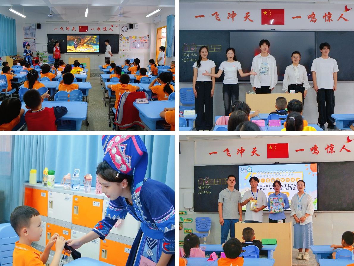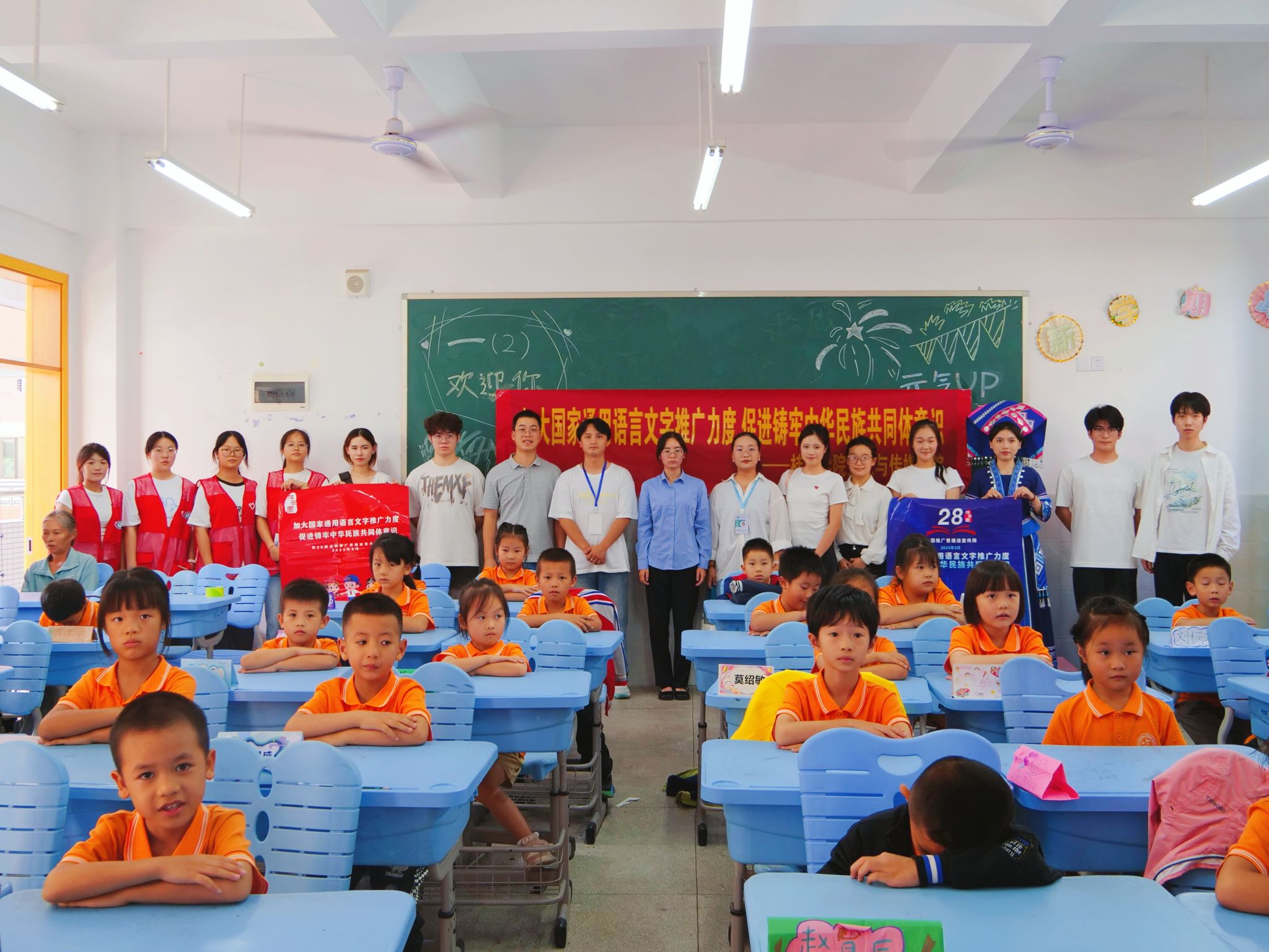 为深入推广国家通用语言文字,助力铸牢中华民族共同体意识,9月22日下午,文化与传媒学院师生代表、“向阳花”文意盎然辅导员工作室成员赴桂林市金雁学校,为一(2)班学生带来了一场生动有趣的普通话推广志愿服务活动。