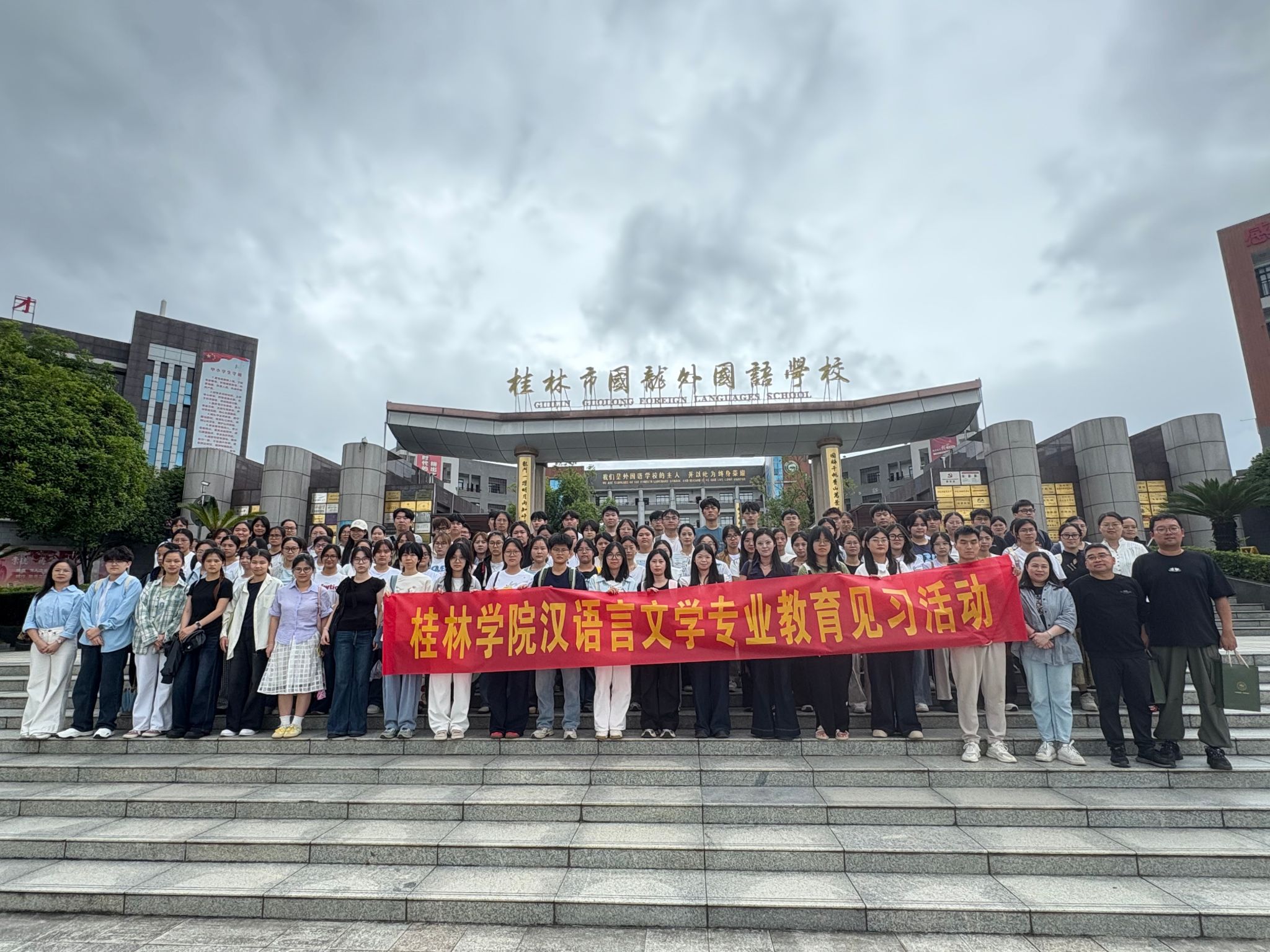 图:汉语言文学专业学生与桂林市国龙外国语学校教师合影