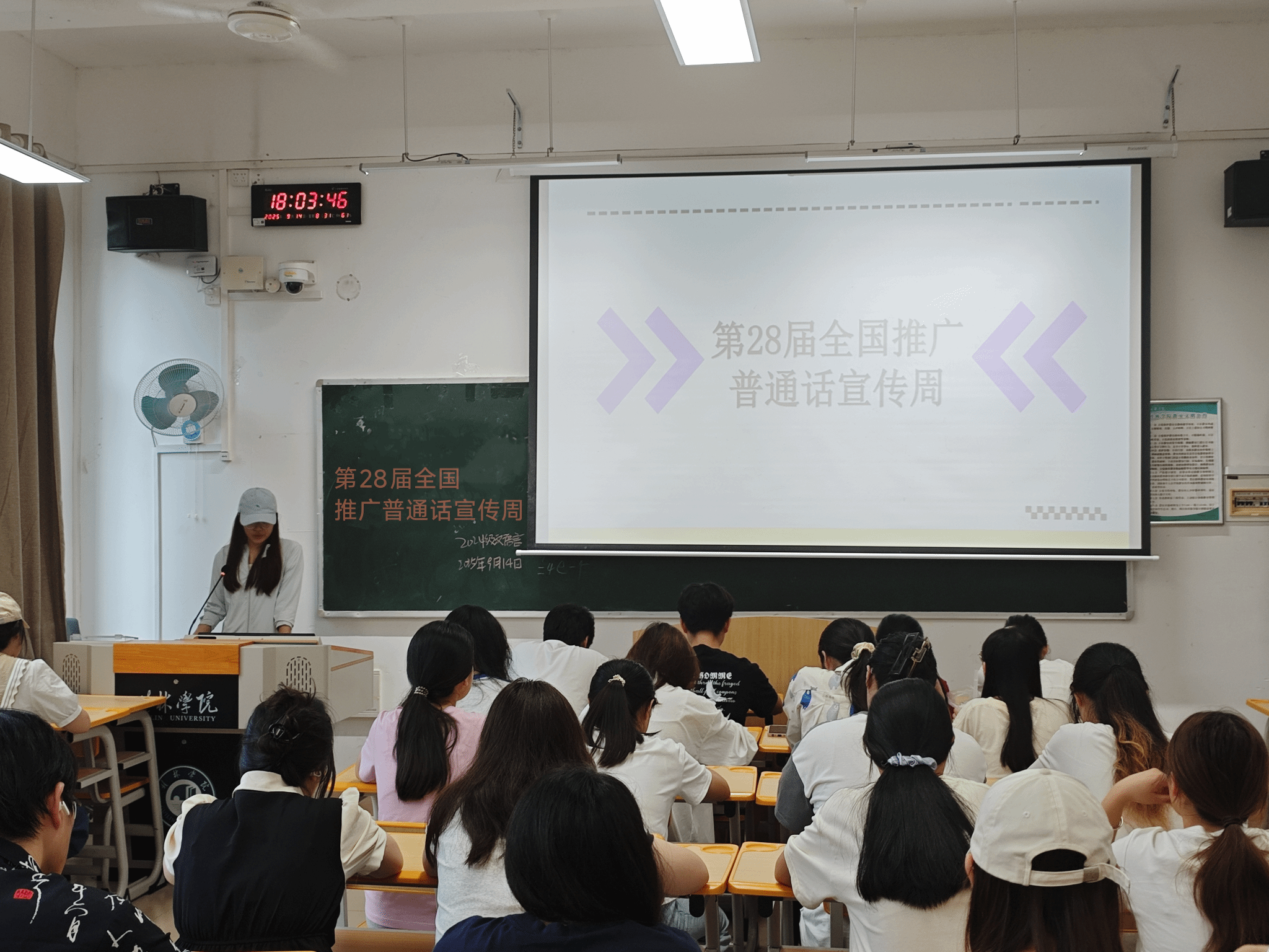 为深入贯彻落实学校关于开展第28届全国推广普通话宣传周的相关要求,充分发挥学院在语言文字工作中的专业优势与引领作用,文化与传媒学院于9月14日周日晚例会开展推普宣传活动。