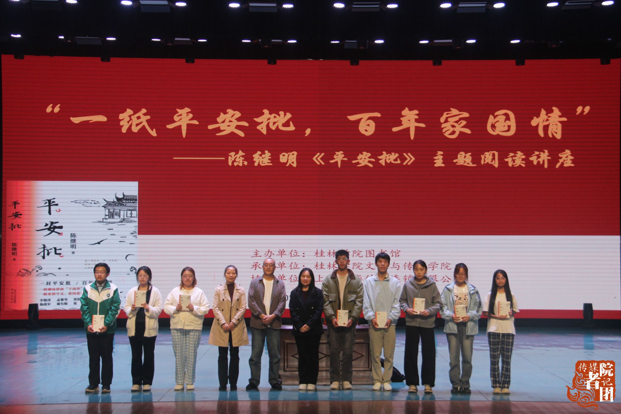 为厚植校园阅读沃土,营造浓郁书香氛围,推动“书香校园”建设走深走实,11月12日,由桂林学院图书馆主办、文化与传媒学院承办的“一纸平安批,百年家国情——陈继明《平安批》校园行暨侨批文化主题分享会”在弘善讲堂成功举办。