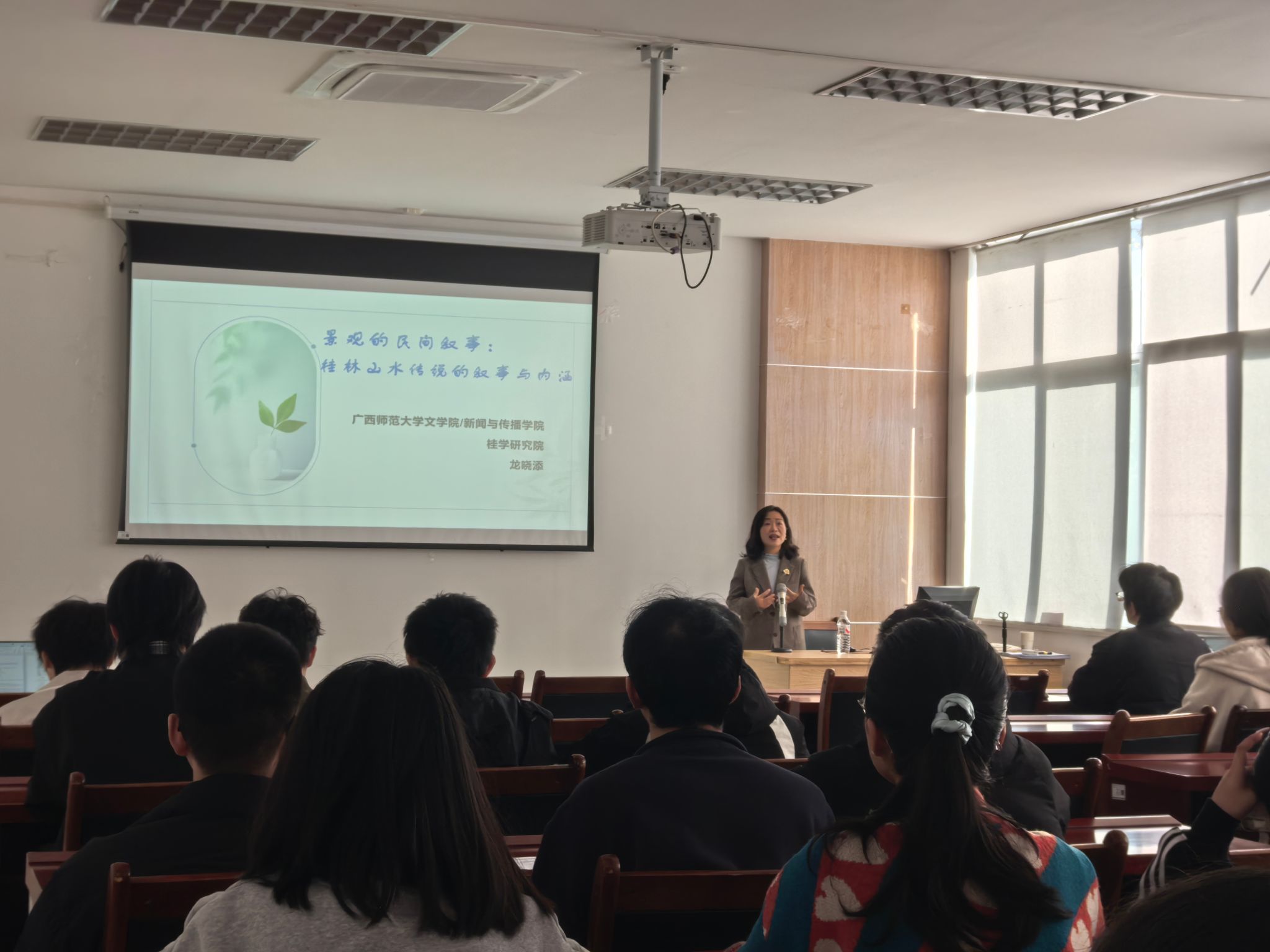 本次讲座由广西师范大学文学院/新闻与传播学院、桂学研究院与桂林学院联合主办,旨在以民间文学视角挖掘桂学文化内涵,为地域文化研究与传播提供新思路。参与学生表示,“原来桂林山水不仅是风景,更是一代代人讲出来的文化活化石”。