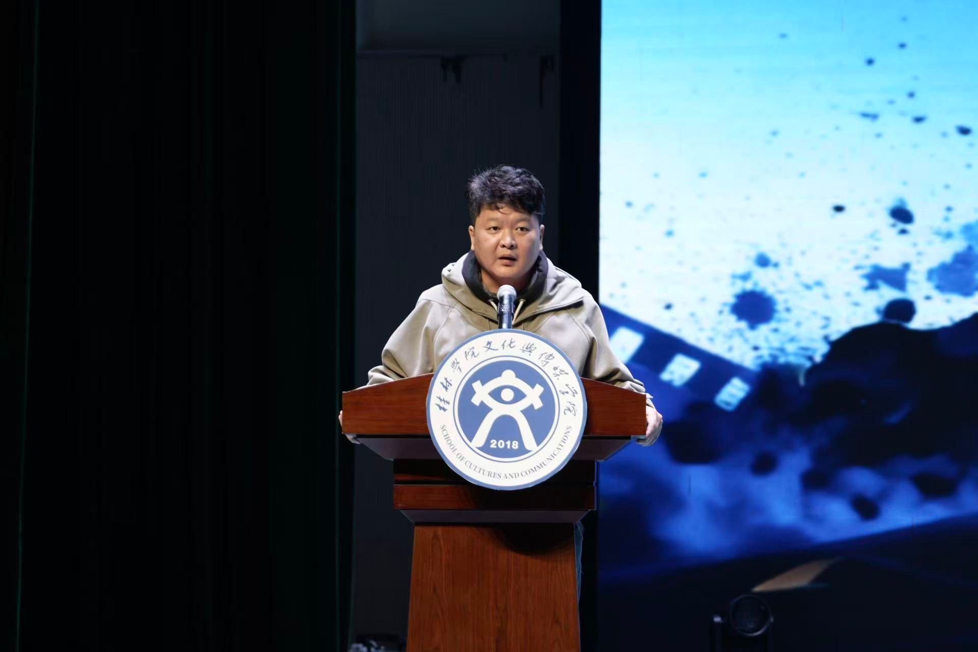 颁奖典礼特别邀请桂林领域文化传媒有限责任公司李奕总经理莅临现场,他结合自身深耕行业的实践经验,围绕新媒体内容创作的行业趋势、创作逻辑与前沿玩法展开分享,以鲜活案例与实用技巧为在场学子带来了针对性启发。此外,典礼还精心设置多元特色环节:“光影承韵”—— 广播电视编导专业实践创作展示环节,集中呈现了广编学子在影视创作中的实践成果与创意构思。此外,歌曲《稻香》温情演唱、趣味撒糖互动、闪狐舞团爵士舞表演等节目轮番登场,既展现了学子们多才多艺的青春风采,更让现场氛围持续升温,掌声与欢呼声此起彼伏。