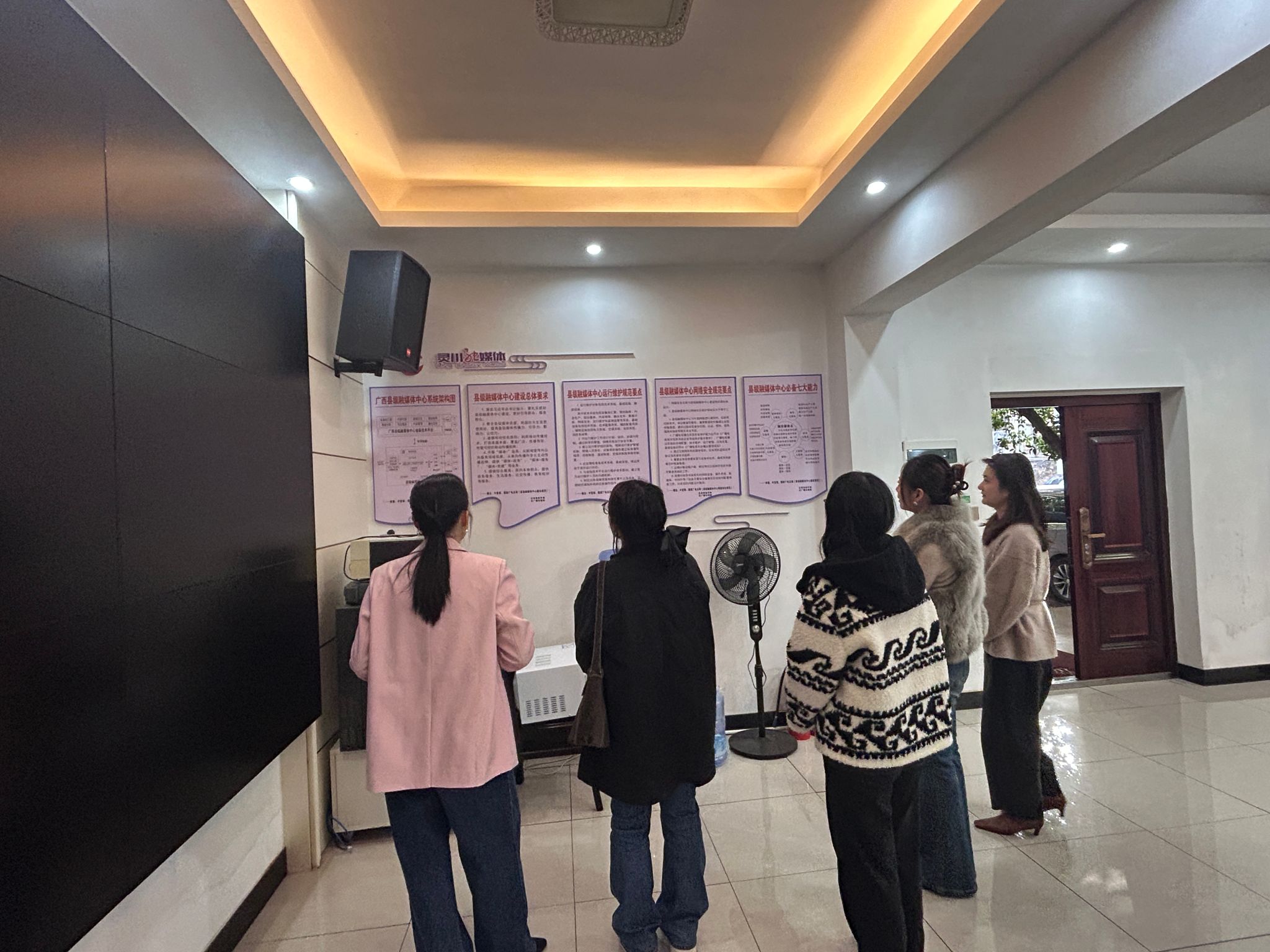 灵川县融媒体中心主任全子轩、副主任阳宁红热情接待,介绍中心发展现状与业务布局,并陪同参观核心部门及基础设施,助力教师直观了解其运作模式。