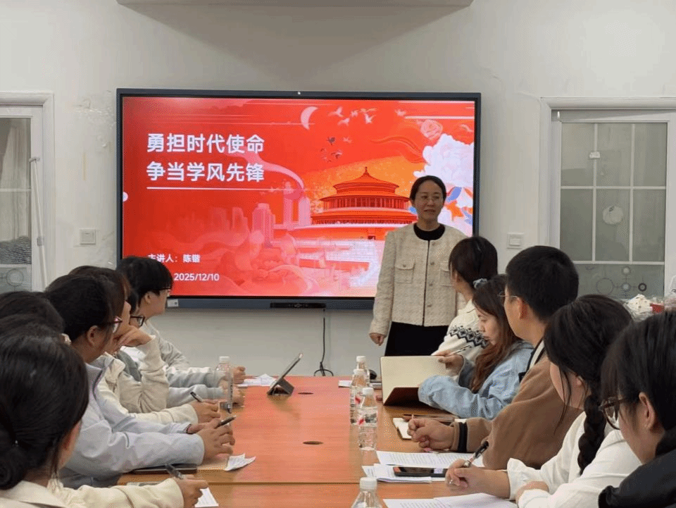 首先,文化与传媒学院副院长陈锴讲授专题党课,围绕“高校学生党员在专业建设与学风建设中的使命担当”展开,系统阐述了学生党员在推动学科发展、营造优良学风中的角色与责任。党课强调,党员不仅要在专业学习中走在前列,更应成为学风建设的引领者、实践者和推动者,以实际行动带动集体进步,筑牢成长根基。授课内容贴近学生实际,激励全体党员在“双建”中主动作为,展现新时代学生党员的先锋形象。