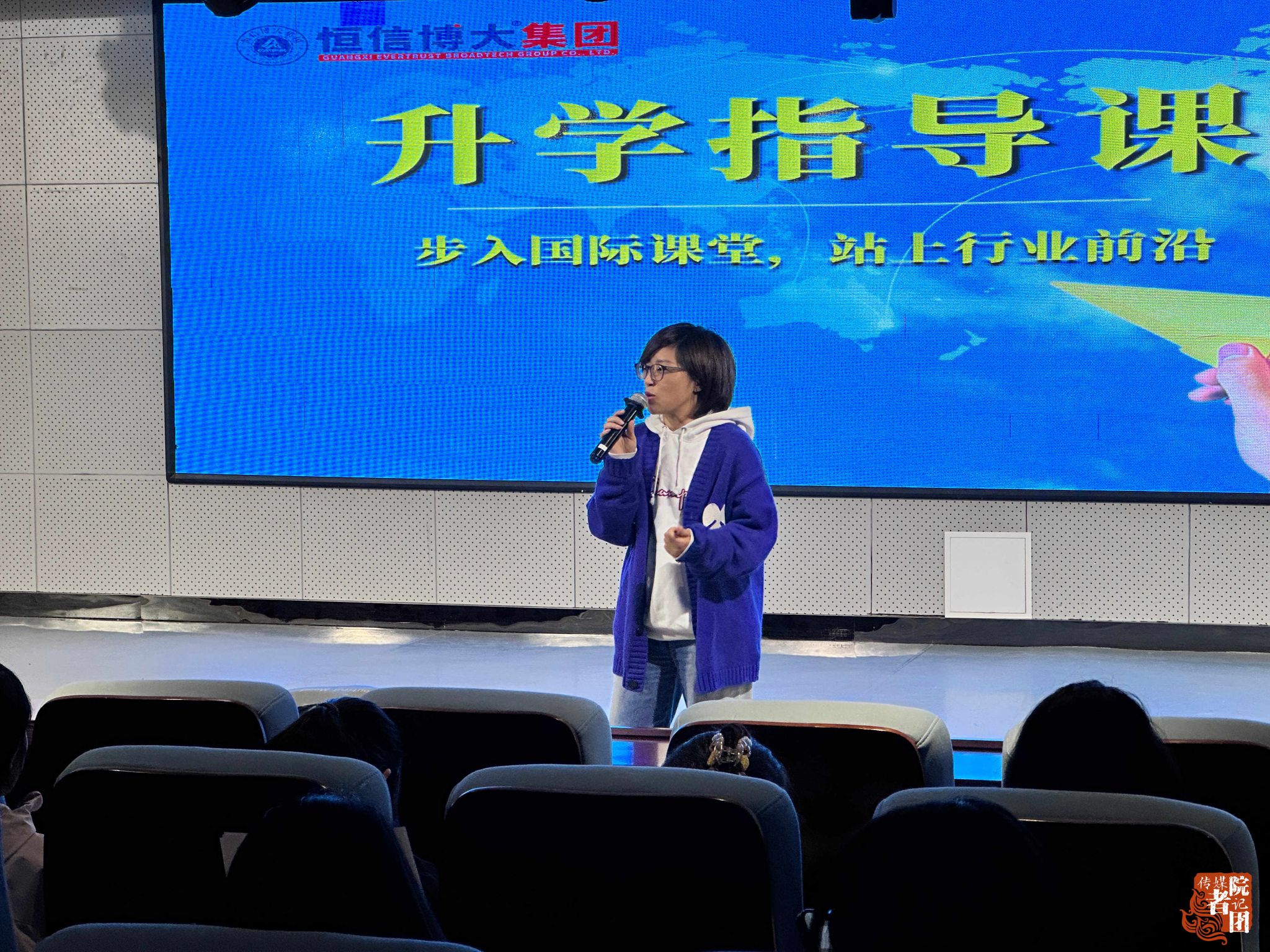 为进一步推进学院国际化人才培养,精准服务学生海外升学需求,12月14日,文化与传媒学院在至善讲堂成功举办留学专题宣讲活动。宣讲会由学院邀请校国际合作与交流处负责人邓慧玲老师主持,广西恒信博大教育集团资深留学顾问冯秋燕担任主讲,学院2023级各专业学生积极参加。