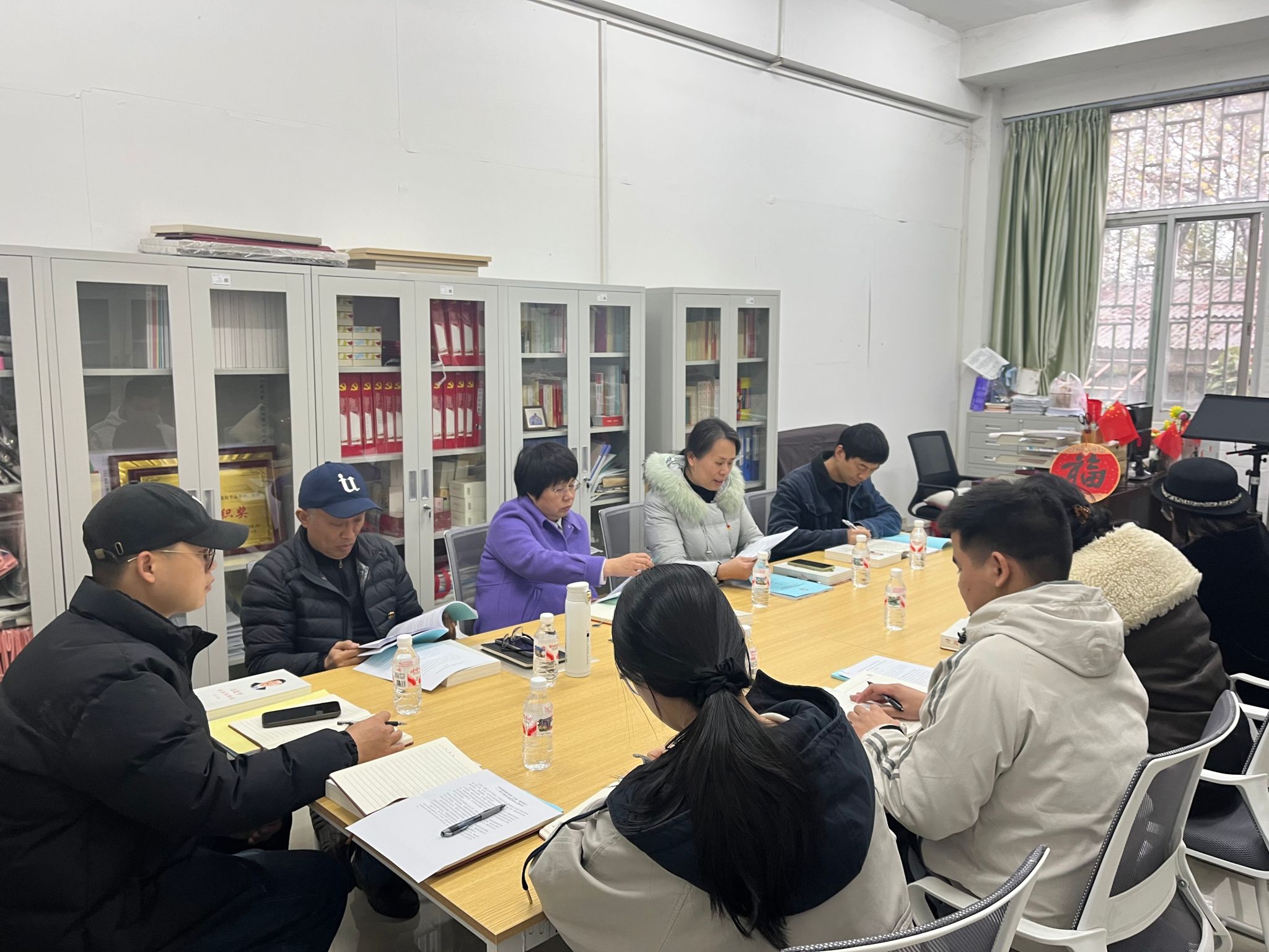 12月24日下午,文化与传媒学院党总支在学院122办公室召开理论学习中心组(扩大)第四次集中学习会,专题学习党的二十届四中全会精神和《习近平谈治国理政》第五卷内容。会议由学院党总支书记主持,党总支理论学习中心组成员、各党支部书记、专职组织员参加会议。学校纪委书记康庚莲、纪委办公室主任陈健文列席会议并作指导讲话。