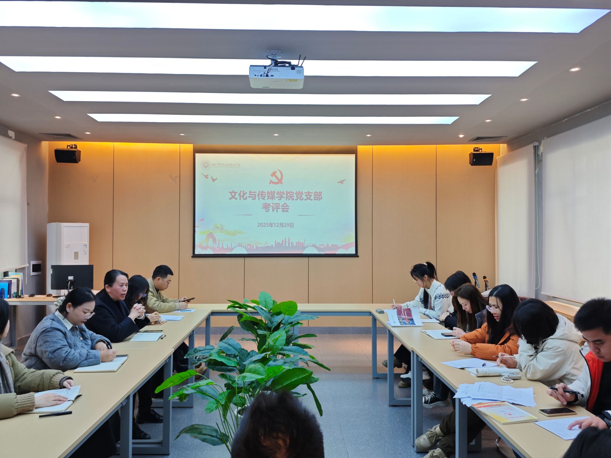 12月29日上午,文化与传媒学院在杉湖家苑“一站式”学生社区辅导员工作室召开2025年度党支部工作考评会。学院党总支委员、各党支部书记、团总支书记及各党支部师生党员代表参加了会议。党总支书记主持会议。