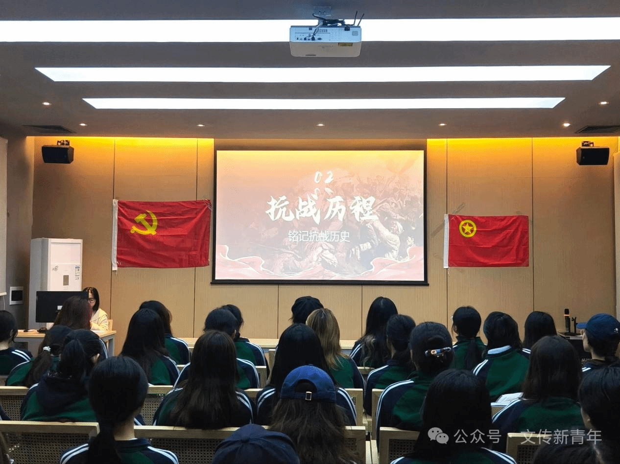 随着学习不断深入,团总支书记从“抗战历史的精神脉络”与“抗战精神的当代传承”两个维度,展开了真挚而深刻的讲述。她借抗战岁月里的英雄过往,从平型关大捷的漫天硝烟到狼牙山五壮士的毅然纵身;从杨靖宇将军“腹中尽是草根与棉絮”的执着坚守,到无数无名战士“宁为玉碎不为瓦全”的坚定抉择。先辈们将视死如归,宁死不屈的民族气节,凝聚成穿透黑暗的火炬,照亮了前行的道路。这些用生命书写的故事,让当代新青年深刻认识到战士们永不放弃,百折不挠的强大精神。