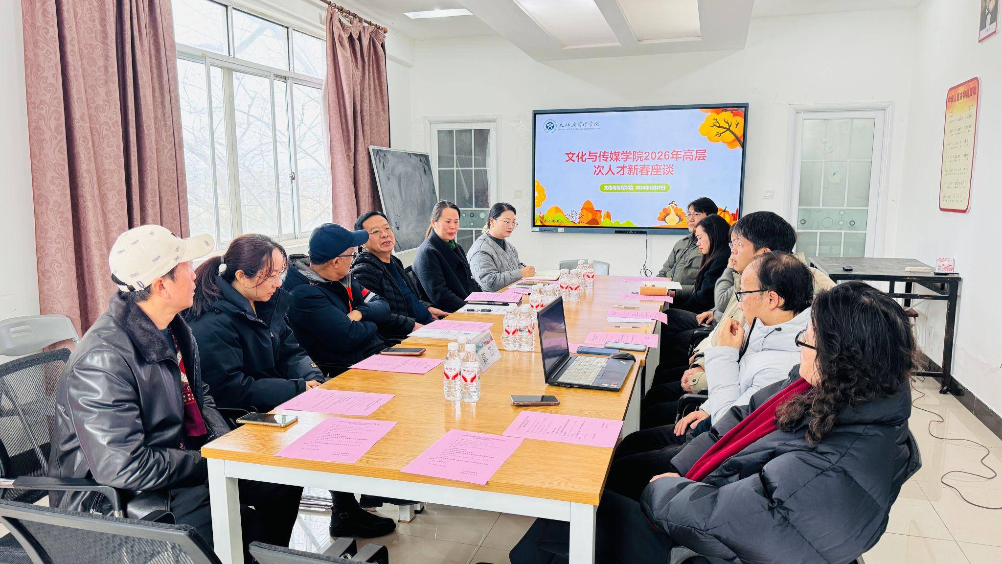1月27日上午,文化与传媒学院在学院二楼会议室召开高层次人才新春座谈会。校监事会主席粟义春出席会议并作讲话,学院班子成员、8名高层次人才代表等共聚一堂,共话学院发展与人才成长。座谈会由学院党总支书记主持。