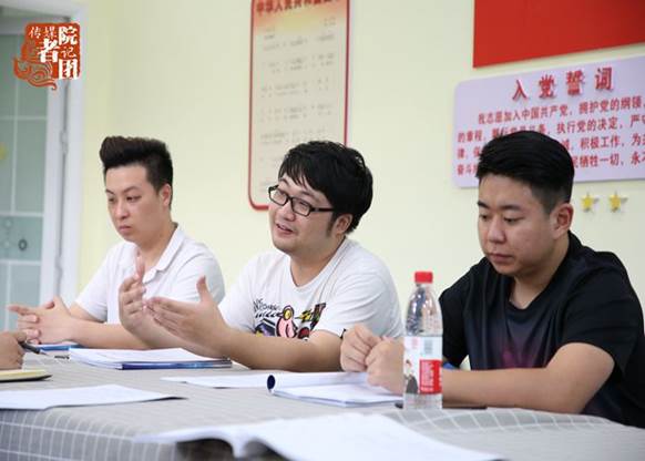 陈泓宇,程欣,孙广蔚等三位外聘教师与传媒学院副院长胡又嘉进行教学问题方面上的交流