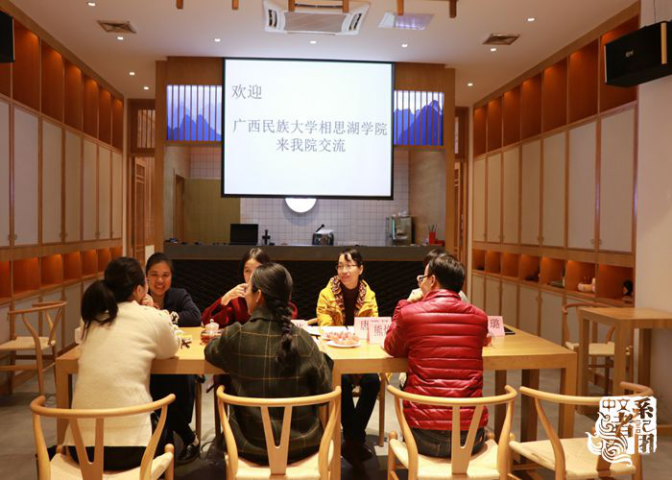 为增强两校交流合作、促进两校发展壮大,更好的为师生服务。12月5日下午,广西民族大学相思湖学院文化传播系常务副主任谢恩临率中文教研室教师覃萍、丁丽君、杨璐到我院中文系学习交流。我校中文系副主任陈锴、汉语言文学教研室主任熊焕颖、汉语国际教育教研室主任马丽盼在明善楼二楼大益爱心茶室与4位老师进行了座谈交流。