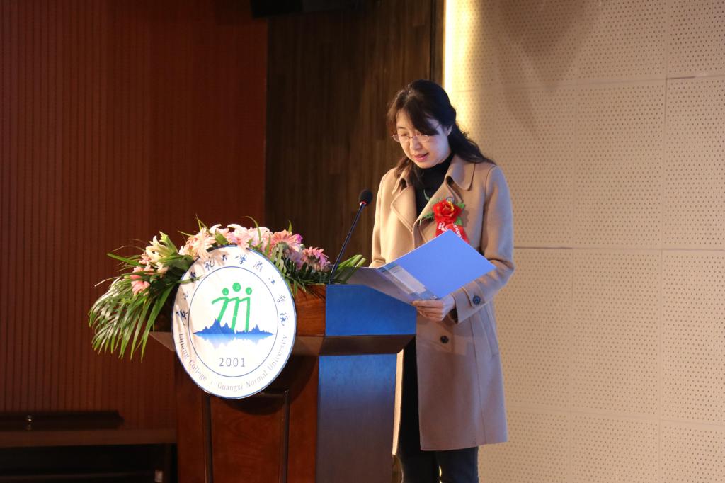 仪式在隆重的气氛中拉开序幕。会议伊始,传媒学院党总支书记孙俊宣布建院大会暨揭牌仪式正式开始,接着他对莅临揭牌仪式现场的领导、嘉宾表示热烈的欢迎和诚挚的感谢,并介绍了与会领导和嘉宾。在主持人介绍完毕后,唐文红书记宣读了学校关于传媒学院/融媒体学院相关领导的任职文件。随后,杨树喆校长、唐文红书记为传媒学院揭牌,颜星主任、王朝元院长为融媒体学院揭牌。至此,广西师范大学漓江学院传媒学院/融媒体学院正式成立。