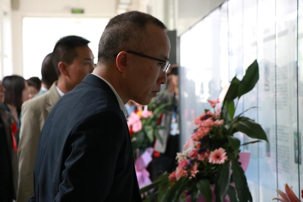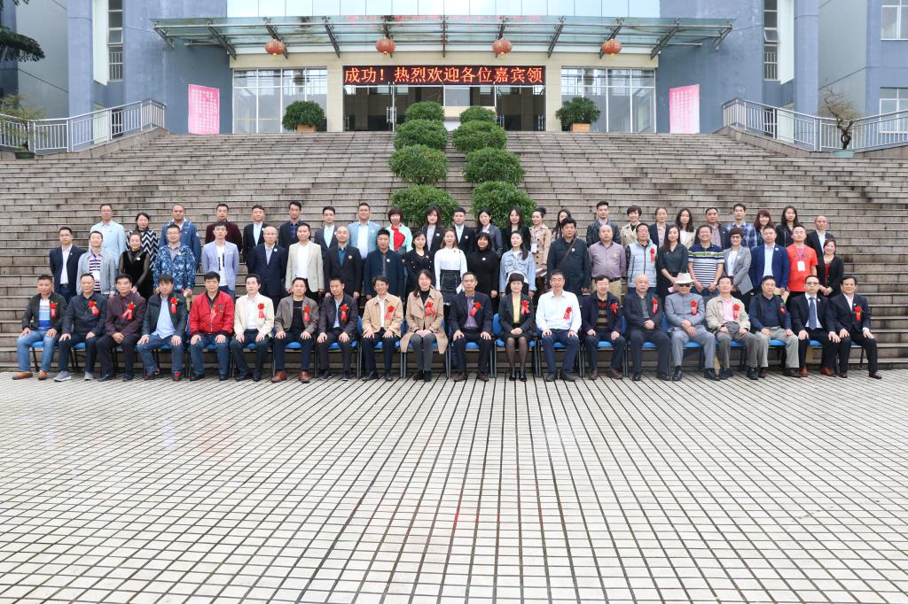 揭牌仪式过后各领导嘉宾在至善楼大阶梯前合影留念,随后嘉宾们兵分两路。一部分嘉宾专家参加”媒体融合发展理论研究与实践研讨会”,另一部分桂林融媒体发展研究会会员则是由传媒学院副院长胡又嘉带领参观传媒学/融媒体学院。