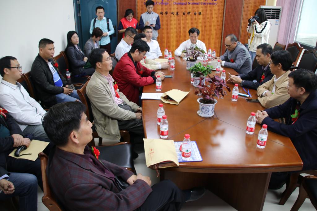 广西师范大学漓江学院传媒学院建院大会暨揭牌仪式于4月18日在至善讲堂举行。上午11点,广西师范大学漓江学院校长杨树喆、传媒学院院长王朝元与桂林业界人士在8207教室开展主题为“媒体融合发展理论研究与实践”的讨论会。下午2点,传媒学院新闻学首席教授朱剑飞于至善讲堂开展关于“当代媒介素养与专业可持续发展”的学术讲座。