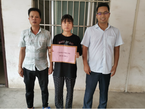 家访过程中,家访老师与家长就同学的在校生活进行了交流,在2017级新闻学滕同学家中家访期间,首先由周老师就学生的学习、生活状态进行了汇报,随后王德彬副书记就国家、广西区和学校的资助政策和专业发展前景向家长详细介绍,鼓励学生克服困难,早日成才。交流过后,王德彬副书记代表学校给滕同学一家送上了慰问金。受访同学的父母对学院表达了感激之情,并表示将积极配合学院的各项工作,努力帮助孩子完成学业。