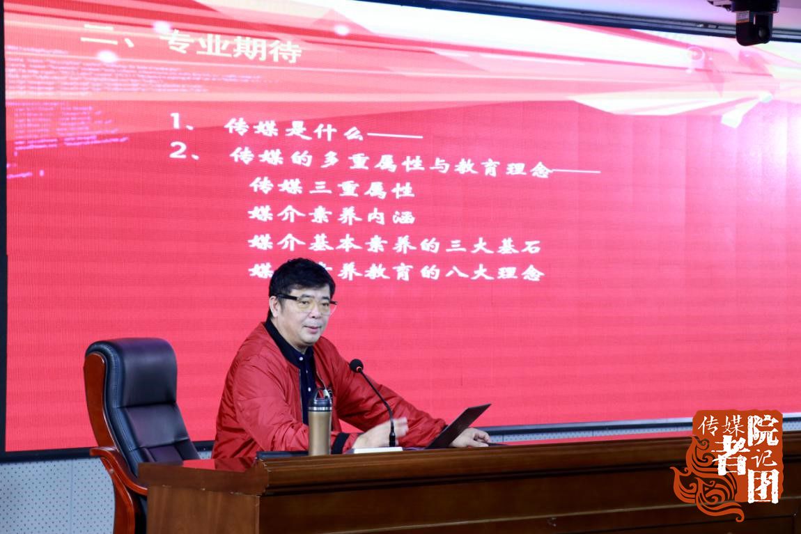 为了加深新生对专业的了解,引导新生代成为传媒行业的中流砥柱,11月13日下午,广西师范大学漓江学院传媒学院新闻学首席教授朱剑飞在至善讲堂进行了“迎新寄语:新生代与媒立方”专题讲座。参加本次讲座的有传媒学院院长王朝元、新闻学教研室主任利求实、教师郭莹以及2018级、2019级新闻和数字出版专业的全体同学。